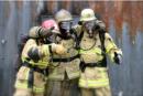 bei Sonnenschein im Freien trainiert und die Bekämpfung eines Kellerbrandes